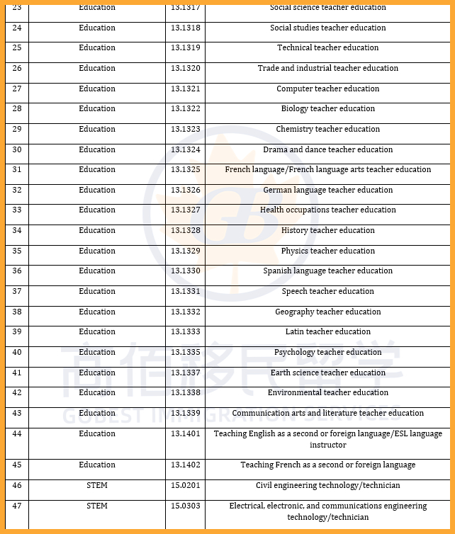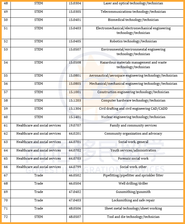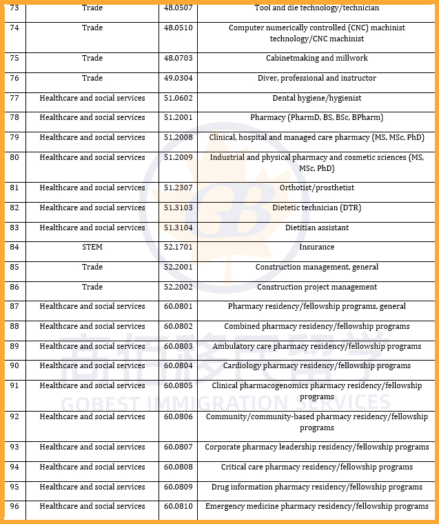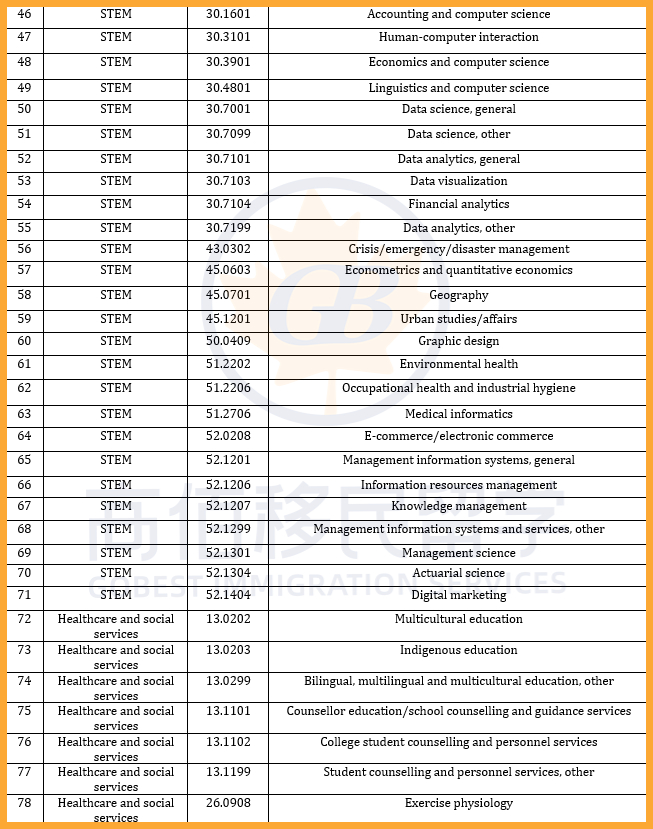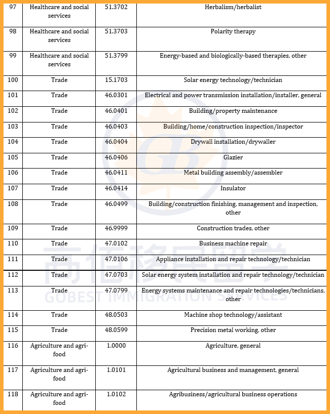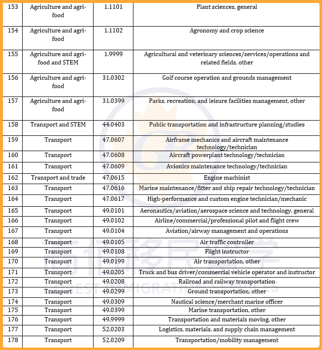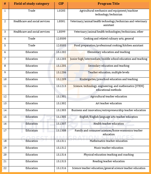 加拿大此次PGWP政策大改,共有119个新专业被纳入资格范围,主要集中在紧缺人才所在的热门行业,如医疗和社会服务及教育等;同时,178个专业被移除,包括部分IT及交通运输类等课程。调整后,共有920个课程仍符合PGWP申请条件。
